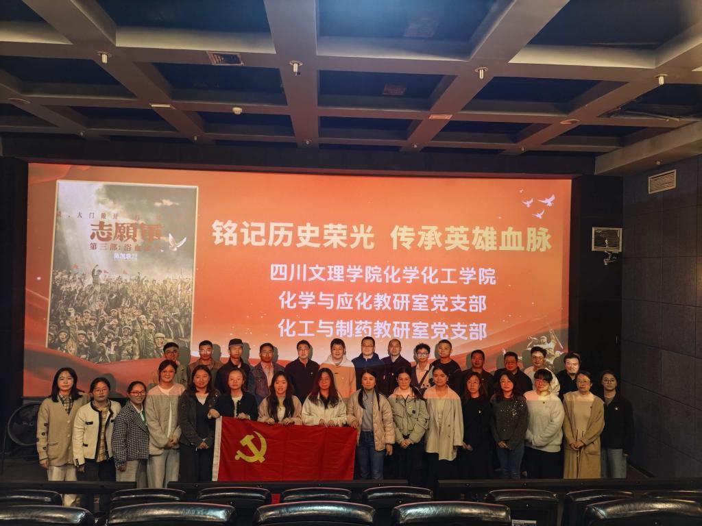 为深化爱国主义教育,传承抗美援朝精神,推动党建与师德师风建设、学科发展深度融合。近日,化工与制药教研室党支部联合化学与应化教研室党支部,组织全体党员与教研室部分教师集中观看历史题材影片《志愿军:浴血和平》,以光影为桥回望英雄岁月,凝聚奋进力量。