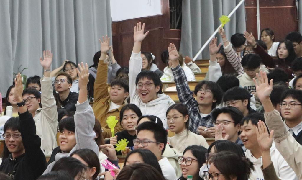 活动伊始,主持人热情洋溢的开场词点燃了全场气氛,比赛随之正式拉开帷幕。紧接着,选手们依次登台亮相,他们以饱满的情感诠释曲目内涵,用动听的歌声传递青春力量。有人以温润婉转的声线轻诉,有人以高亢激昂的歌喉抒怀,也有人以灵动的唱腔把青春里的迷茫与坚定、成长中的欢笑与思索揉进旋律。他们站在敞亮的舞台中央,让观众看见年轻灵魂的鲜活模样,书写属于自己的青春诗行。每一首演唱都赢得台下阵阵掌声,观众为选手们的精湛歌喉喝彩。此外,比赛中场还设置有奖竞猜活动,同学们踊跃参与,将现场气氛推上高潮。