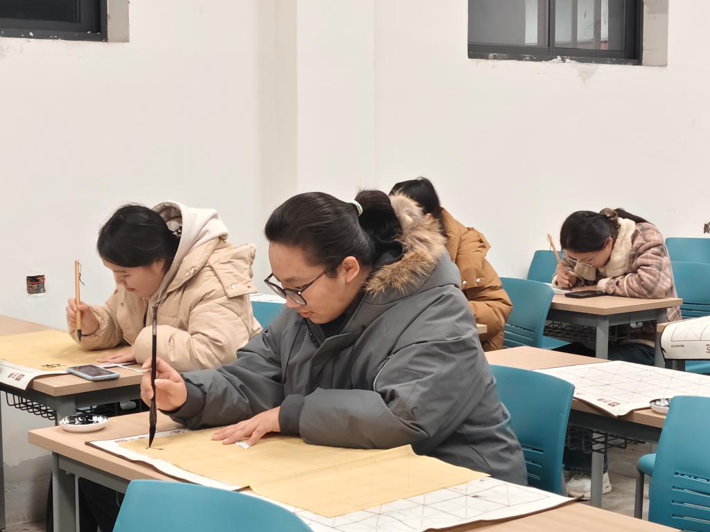 比赛设毛笔、硬笔、粉笔三个环节,以现场书写形式进行,统一命题,全面考查选手的书法功底与临场表现。赛场上,选手们凝神聚气、运笔自如,作品或遒劲有力,或娟秀工整,充分展现出扎实的书写技巧与对书法艺术的热爱。志愿者们始终坚守岗位,细致服务,负责材料分发、秩序维护及赛后整理等工作,保障了比赛顺利进行。他们用耐心与责任心为比赛的顺利开展筑牢保障,成为赛场内外一道温暖而靓丽的风景线。