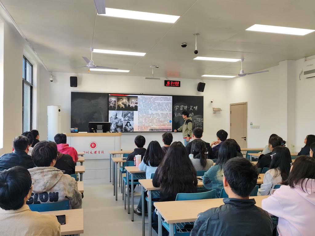 团课伊始,各团支部组织全体同学齐唱团歌,在激昂的歌声中,本次学习正式拉开序幕。随后,团支书带领同学们重温雷锋事迹,深入解读新时代雷锋精神的内涵,引导青年学子领悟无私奉献、助人为乐的价值追求,同时号召大家积极参与志愿服务活动,进一步明确了青年投身基层、服务群众的行动方向。紧接着,团支书以第三十四届“世界水日”为契机,围绕树立节水意识、践行节水行动、推广节水妙招三个方面展开讲解,引导同学们增强节水意识,养成节水习惯。